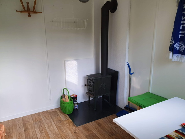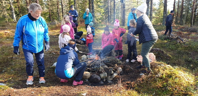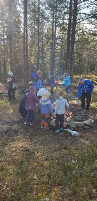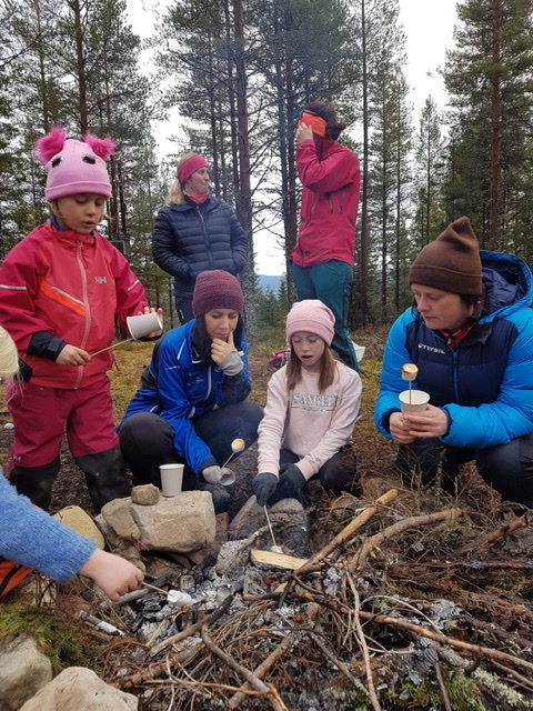 Vi serverte kaffe, saft og marsmallows. Folk hadde med grillmat selv, og vi hadde en koselig stund i sola. Bua står nå åpen for den som vil benytte den.