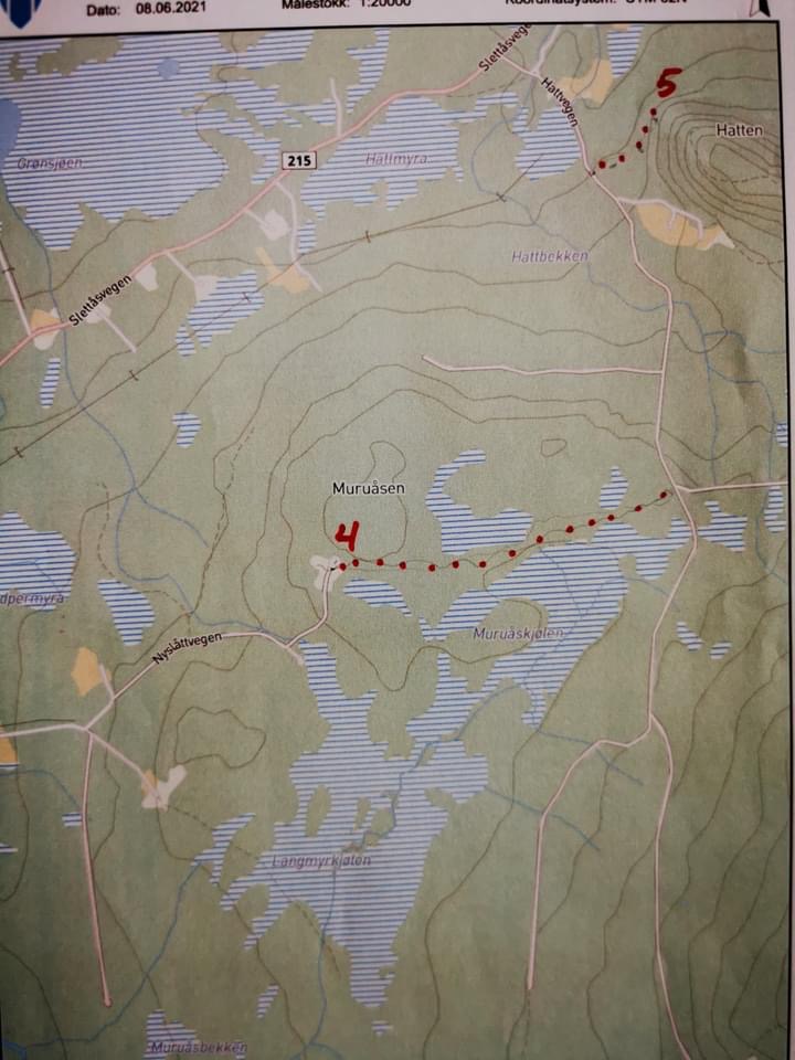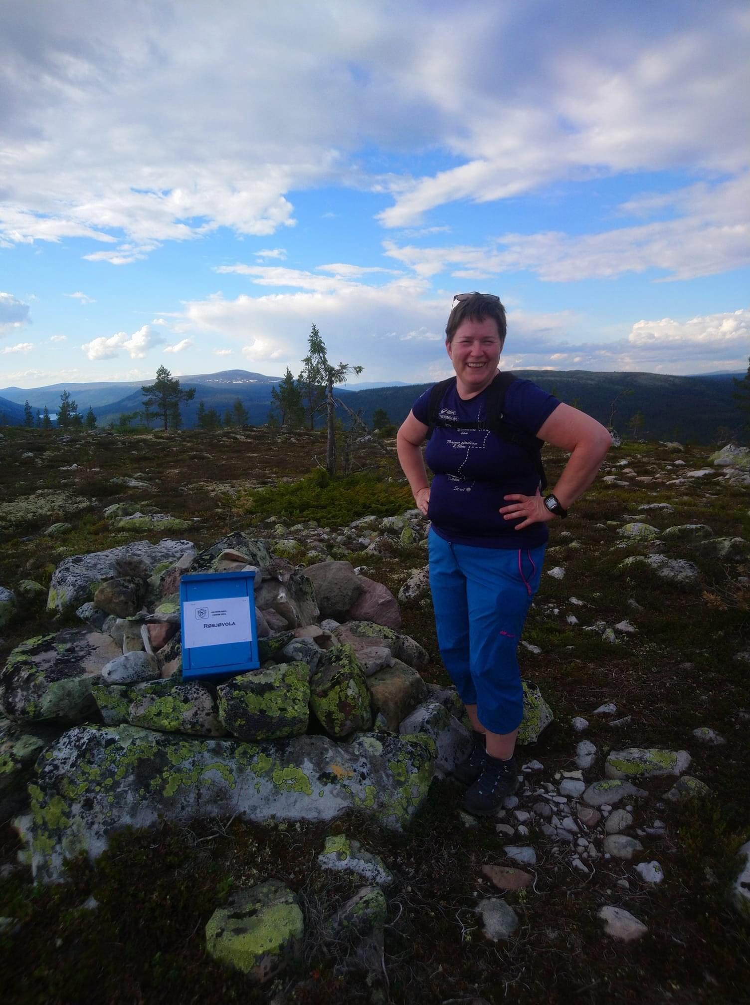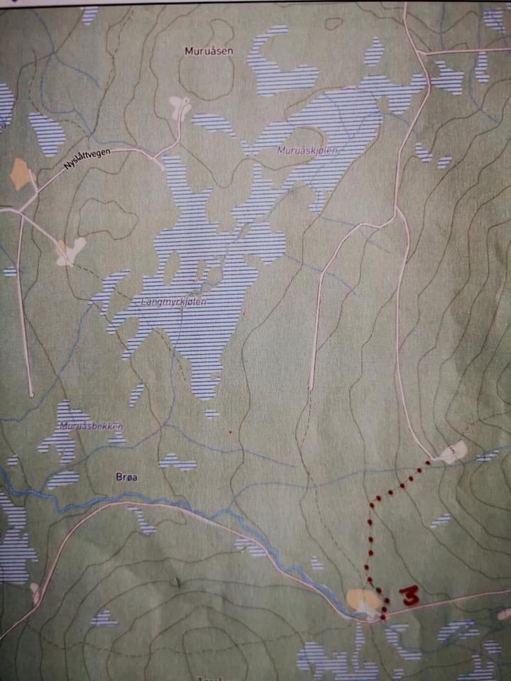 Årets lengste tur er 3,5 km, men i meget lettgått terreng. Parkering i grustaket 1,5 km oppmed Kjølsetervegen. Der er det blåband. Følg vegen 500 m, og ta så stien til høyre som er merket med bånd. Etter nye 500 m er du på vegen til Røsjøen. Etter 600 m ta blåmerket sti til høyre, og følg denne stien i 1,6 km til blåkassa. Stien fra Røsjøvegen er litt lite synlig helt i starten(vi har merket godt med blå bånd, i tillegg er det litt gulmaling på enkelte steiner), og på slutten, men da ser dere masta hvor kassa er.