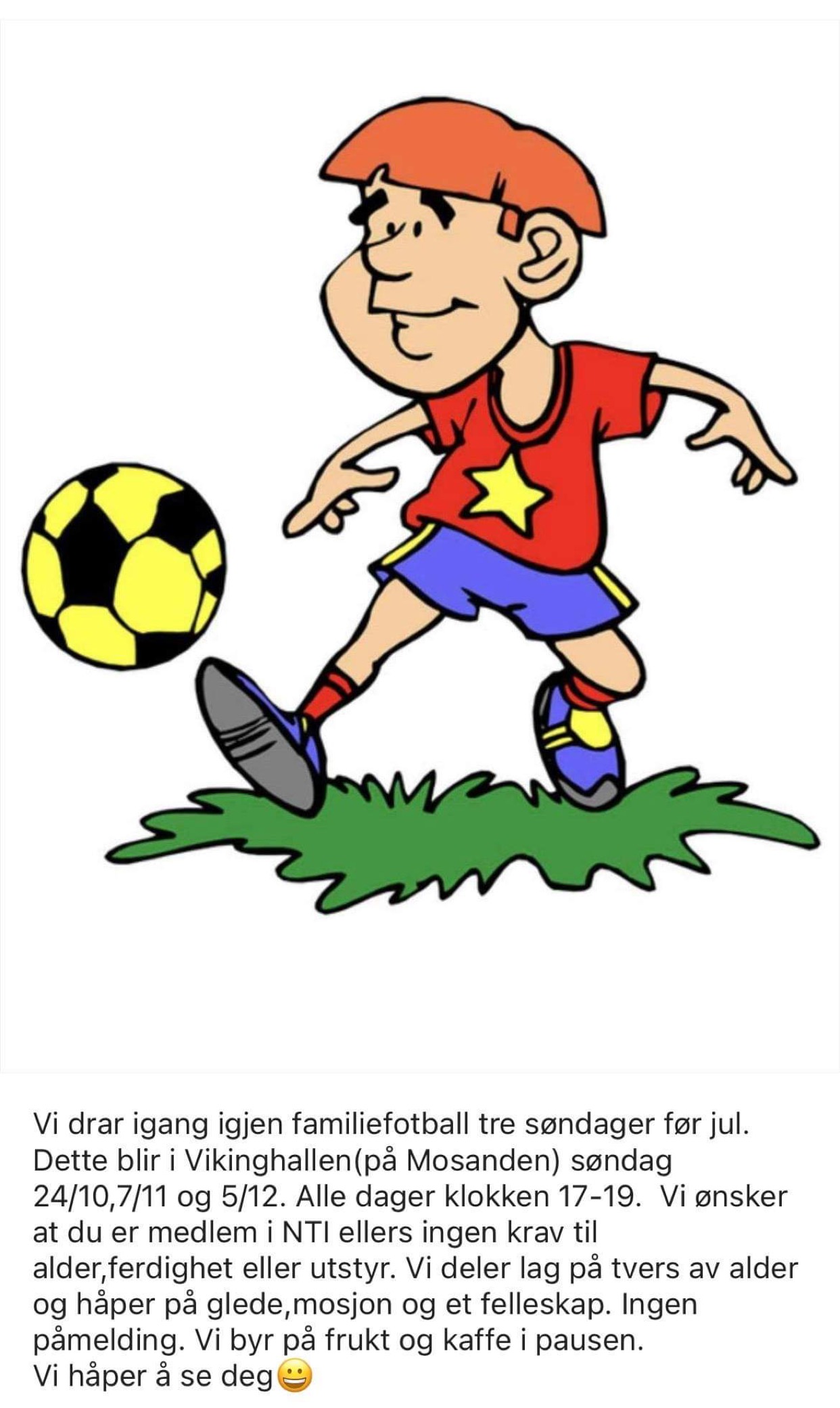 NTI drar i gang igjen familiefotball tre søndager før jul.