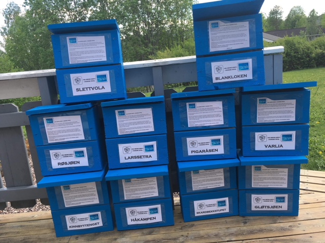 På hvert sted finnes ei blå kasse med bok i. Registrer deg der og du er med i «kampen» og trekningen om fine premier.