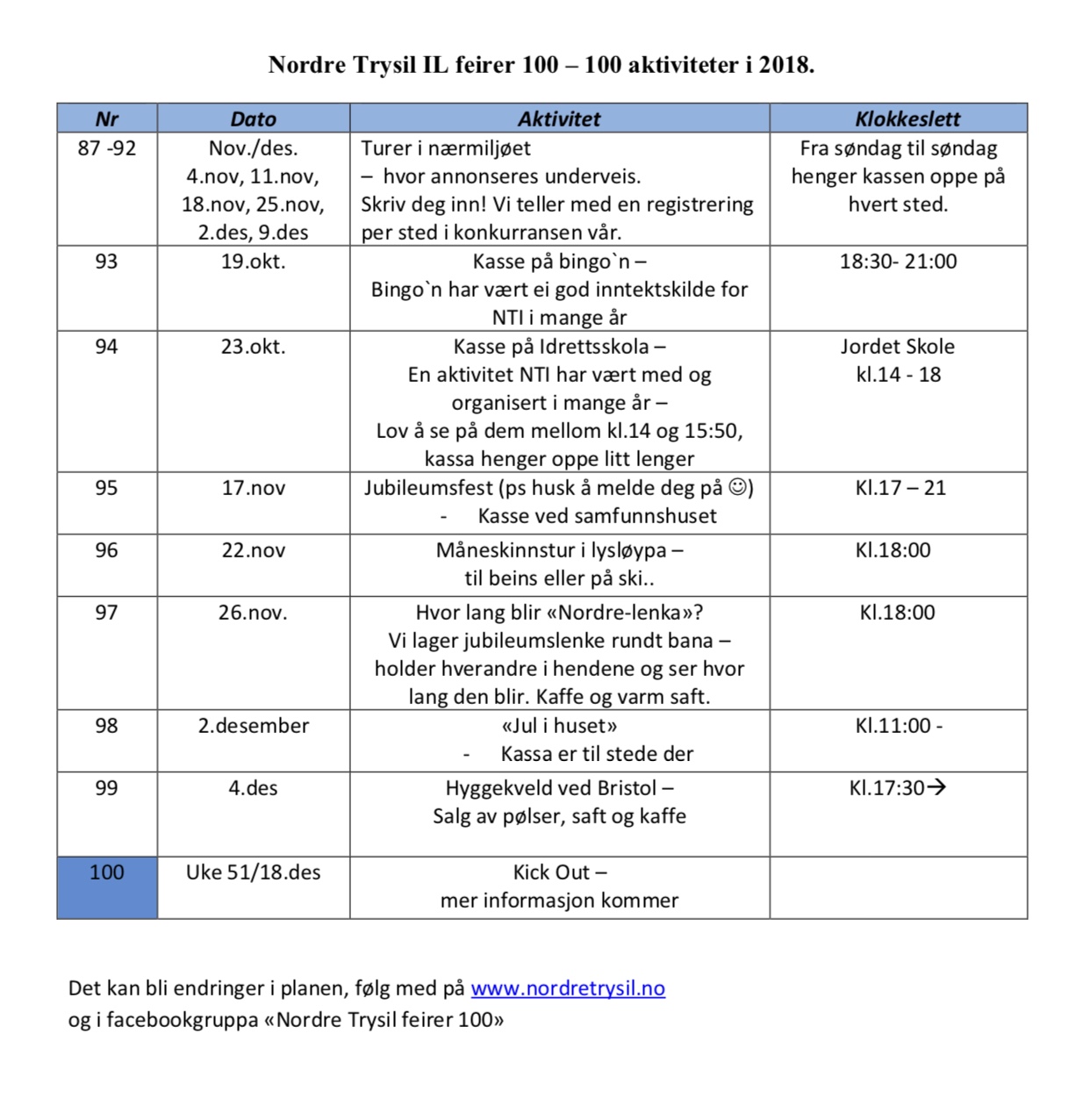 100 aktiviteter har blitt planlagt og snart er alle gjennomført. Et år går jammen fort, og mye har vi fått gjort ?