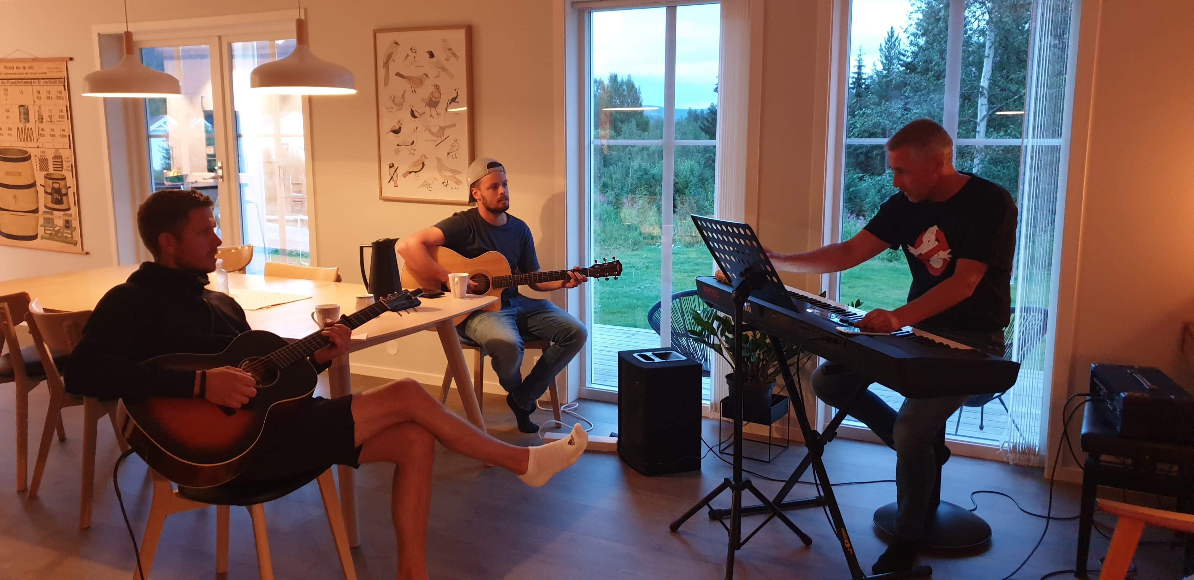kl. 11 får vi besøk av Simen, Åsmund og John Trygve, dem byr på en liten intimkonsert til salget og kaffen.